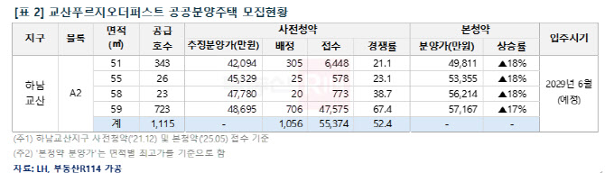 2021년말 사전청약 당시보다 분양가 18% 올라
