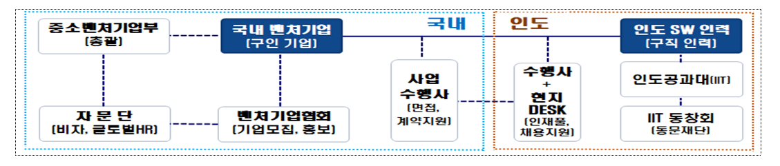 올해는 벤처기업 모집을 시작으로 본격 추진한다. 내달 1일부터는 인도 SW 개발자를 인도 현지에서 모집해 연말까지 지속적으로 인재 매칭에 나선다.