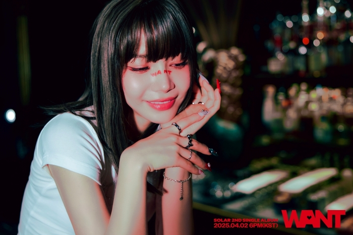 ‘WANT’는 사랑이 시작되는 순간을 설렘 가득한 핑크빛 무드로 담아낸 싱글이다. 솔라는 잇단 티징 콘텐츠 속 ‘너드’와 ‘시크릿 파트너’를 오가며 컴백 예열을 마쳤다.