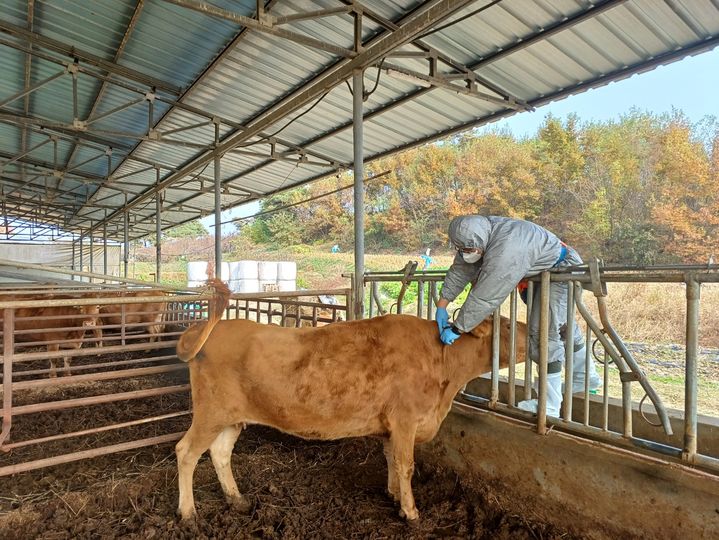 [안동=뉴시스] 소 럼피스킨 백신 일제 접종. (사진=경북도 제공) 2025.04.02. photo@newsis.com *재판매 및 DB 금지 |
