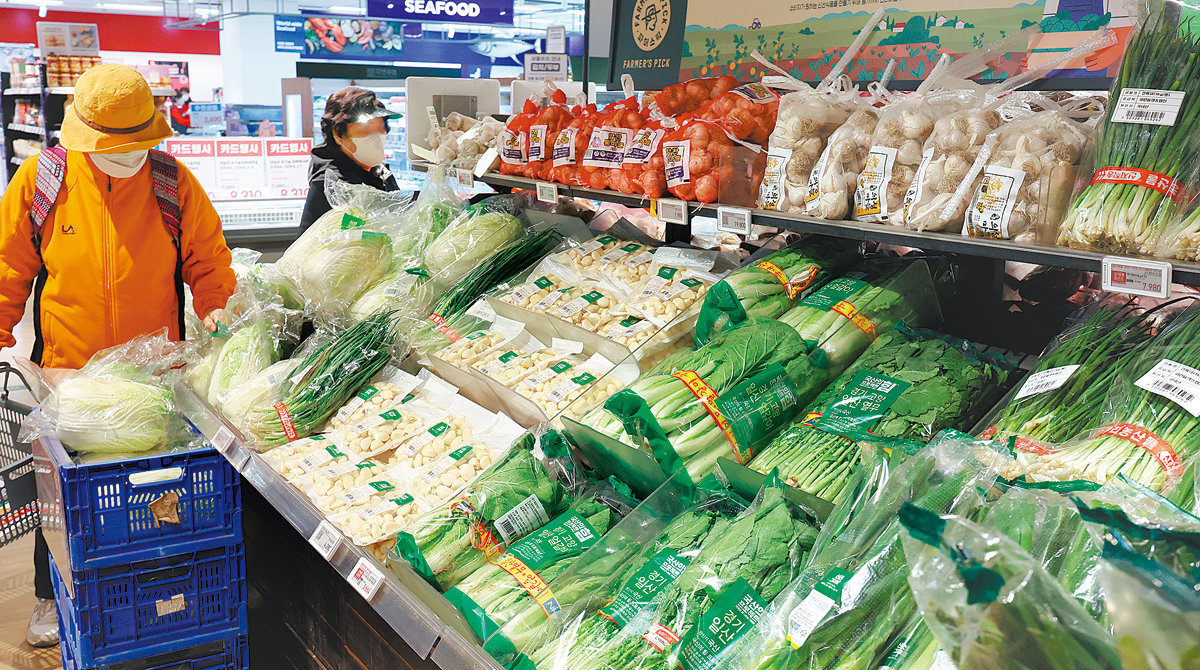 2일 서울 시내 대형마트를 찾은 한 시민이 배추를 살펴보고 있다. 통계청에 따르면 배추 가격은 지난달에도 1년 전보다 49.7% 오르며 고공 행진을 이어갔다. 지난해 작황 부진의 여파가 지속되고 있는 것이다. 뉴스1 |