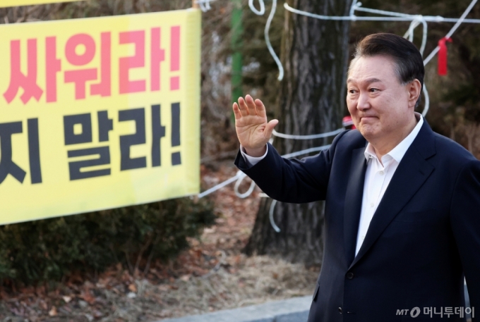 (의왕=뉴스1) 오대일 기자 = 법원의 구속취소 청구 인용으로 석방된 윤석열 대통령이 8일 오후 경기 의왕시 서울구치소에서 풀려나 지지자들에게 인사하고 있다. 윤 대통령은 내란 우두머리 혐의로 지난 1월 26일 구속기소 된 지 41일 만, 1월 15일 체포된 후 52일 만에 자유의 몸이 됐다. 2025.3.8/뉴스1 Copyright (C) 뉴스1. All rights reserved. 무단 전재 및 재배포, AI학습 이용 금지. /사진=(의왕=뉴스1) 오대일 기자 |