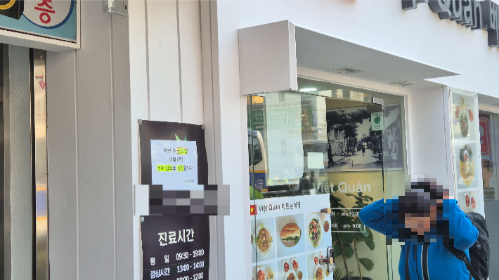 윤석열 대통령 탄핵 심판 선고를 하루 앞둔 3일, 서울 종로구 헌법재판소 인근 한의원 문 앞에 선고 당일 휴진 안내문이 붙어 있다. 양형욱 기자 |