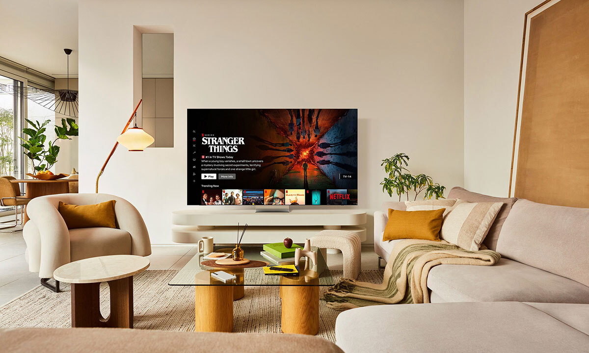 삼성전자는 네오(Neo) QLED·OLED·더 프레임 등 넷플릭스 애플리케이션(앱)을 지원하는 2025년형 삼성 TV와 2024·2025년형 모니터에서 ‘HDR10+’ 콘텐츠 시청이 가능하다고 3일 밝혔다. HDR10+는 삼성전자가 주도하는 고화질 영상 표준 기술로, 장면별 밝기와 명암비를 최적화해 영상의 입체감을 높이고 정확한 색 표현을 지원하는 기술이다. 사진은 이 기술이 적용된 TV로 연출된 거실 모습.