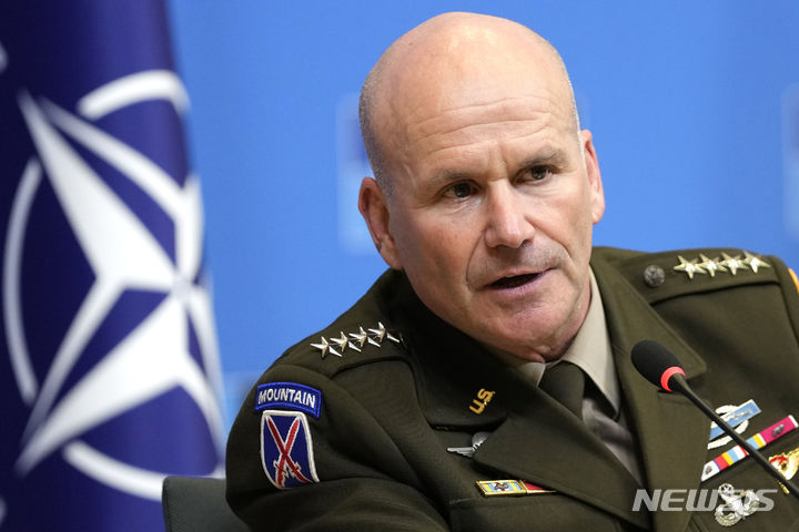 [브뤼셀=AP/뉴시스]북대서양조약기구(NATO·나토) 유럽연합군최고사령관을 겸하는 크리스토퍼 카볼리 미 유럽사령관이 3일(현지 시간) 우크라이나에 F-16 전투기가 추가 배치되고 있다고 밝혔다. 사진은 카볼리 사령관이 지난해 1월18일(현지시각) 기자회견을 하는 모습. 2024.4.11. |