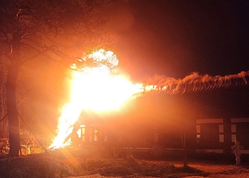 (남원=연합뉴스) 김동철 기자 = 5일 오후 9시 38분께 전북 남원시 사매면 서도리에 있는 호성사 대웅전에서 불이 났다.