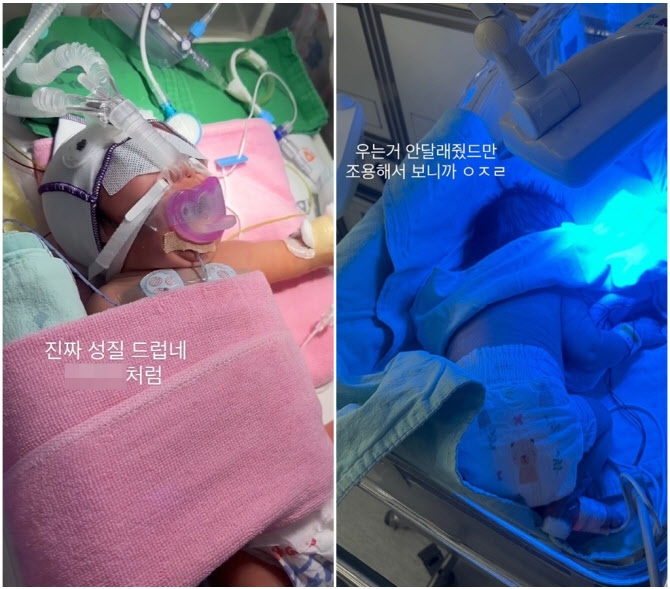 A 씨는 “(아이의) 산소포화도가 낮아서 신생아 중환자실에 입원했고 하루 뒤 청색증과 황달이 와서 치료 중이었다”며 “제대로 된 수유를 못하는 상황이라서 관 수유를 하고 있었다”고 설명했다.