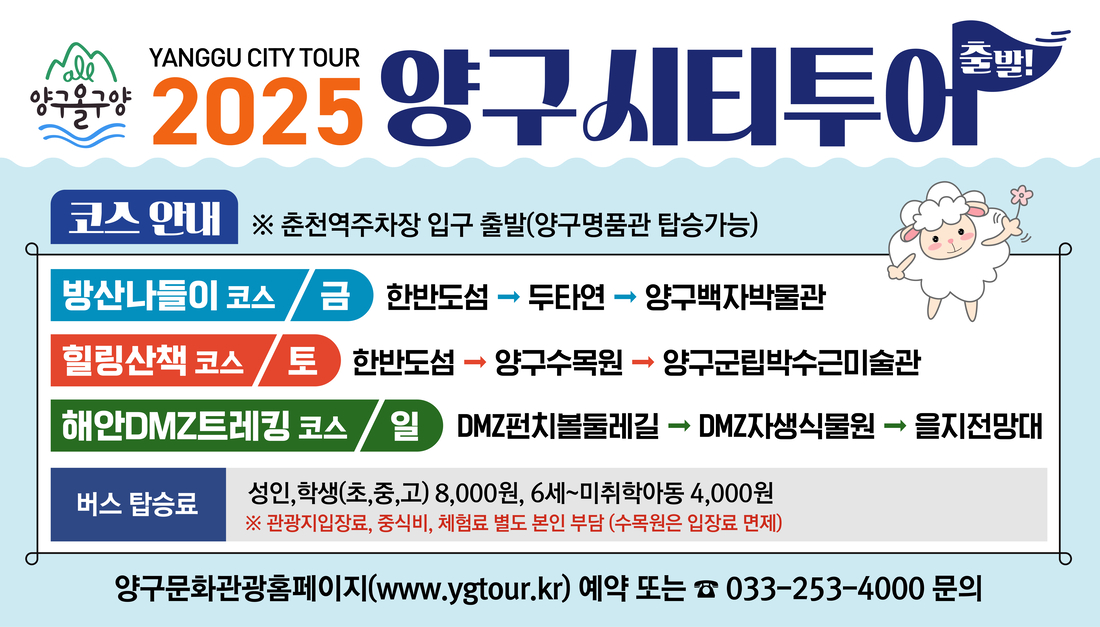 양구 시티투어에 참여하려면 양구문화관광 누리집 등을 통해 사전 예약해야 한다.