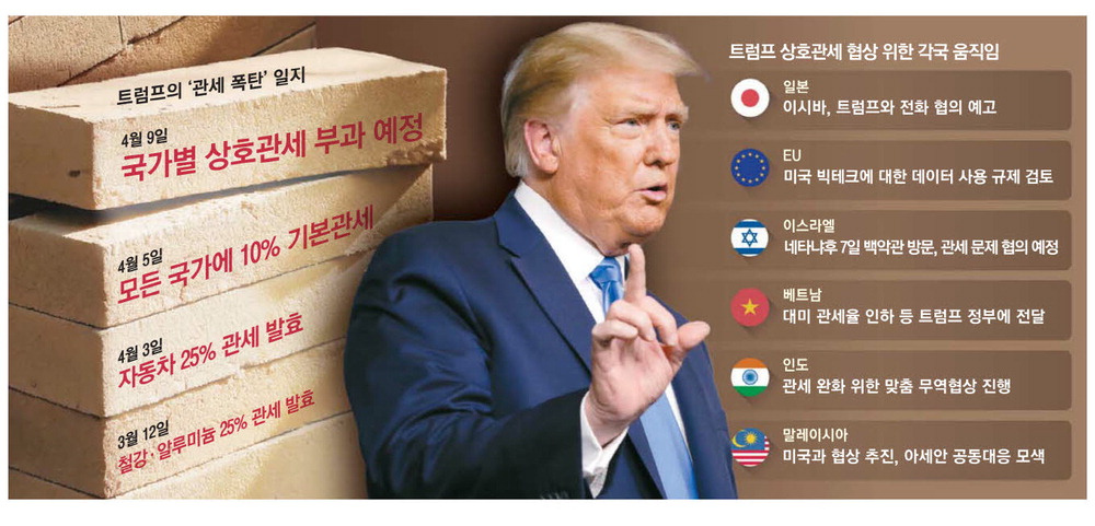 세계 각국은 관세전쟁의 '본게임'이라고 할 수 있는 상호관세 발효 예정일인 9일을 앞두고 앞다퉈 협상에 나서고 있다.
