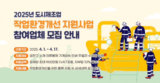 한편, 구는 지난해 116개 업소에 작업환경개선비 5억여 원을 지원해 작업능률 향상과 안전관리를 도왔다.