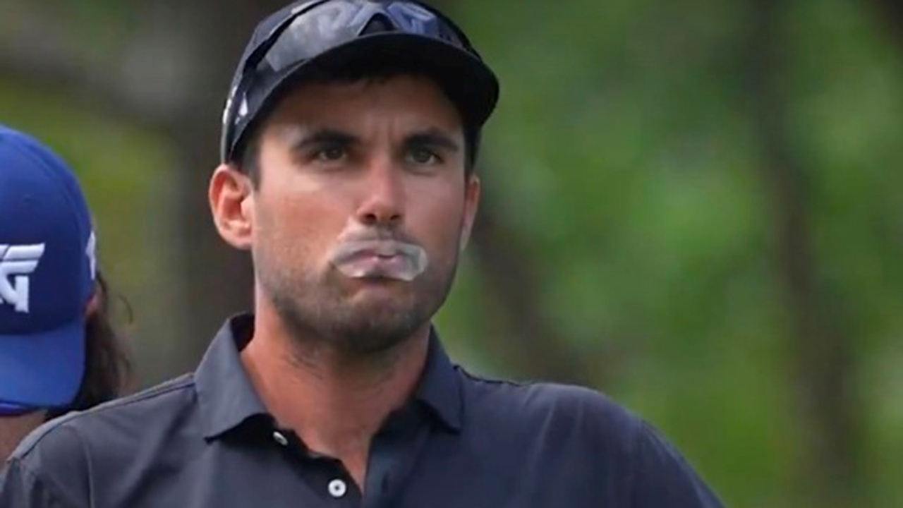 미국프로골프(PGA) 2부 투어 대회에 출전한 선수가 테이프를 입에 붙이고 나왔습니다.