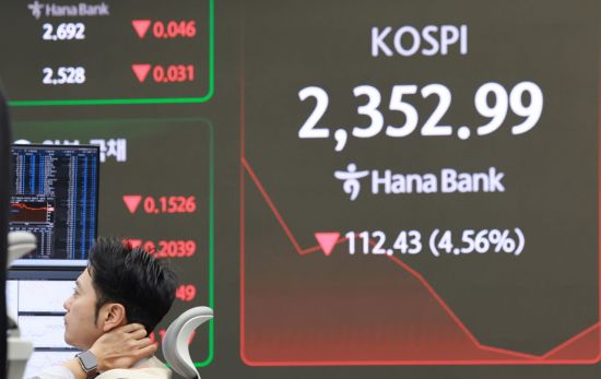 7일 서울 중구 하나은행 본점 딜링룸에서 딜러들이 업무를 보고 있다. 연합뉴스 |