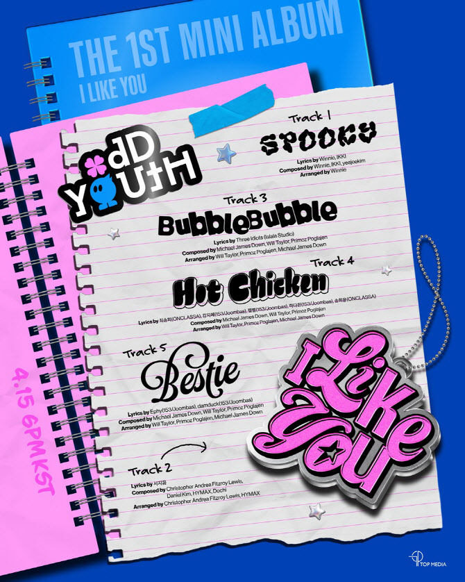 이번 미니앨범에는 앨범과 동명인 타이틀곡 ‘아이 라이크 유’를 포함해 ‘스푸키’(SPOOKY), ‘버블 버블’(Bubble Bubble), ‘핫 치킨’(Hot Chicken), ‘베스티’(Bestie)까지 총 5곡이 수록됐다.