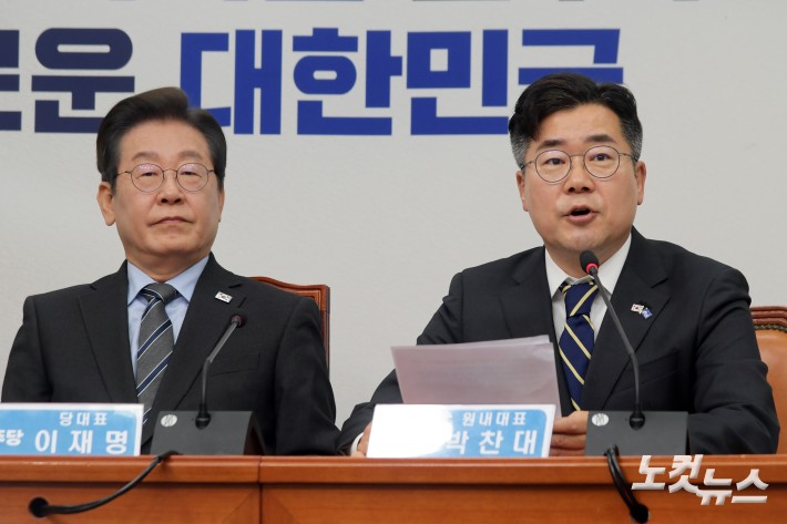 더불어민주당 박찬대 원내대표가 7일 서울 여의도 국회에서 열린 최고위원회의에서 발언을 하고 있다.