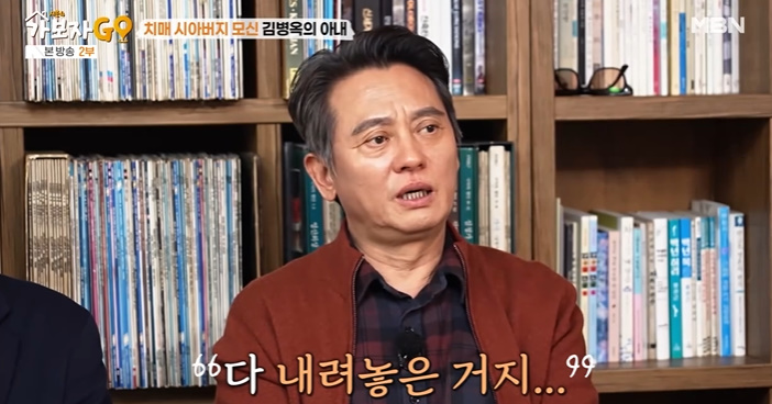이어서 김병옥은 "우리 집사람이 그때 힘들었다. 나하고의 관계도 힘들었고 아버지 (병간호) 때문에도 더 힘들었고. 어떻게 할 수가 없었다. 나는 다 내려놨다. 그때 이혼할 수도 있었다. 서로 힘들었다"라며 당시 아버지의 병간호로 인해 이혼까지 갈 뻔했던 과거를 떠올렸다.