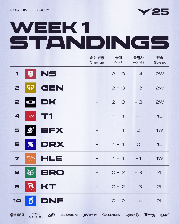 2024년 LoL 월드 챔피언십 4강에서 T1에게 패하면서 결승 진출에 실패했고 올해 열린 LCK컵 결승전에서 한화생명e스포츠에게 2대3으로 패하면서 퍼스트 스탠드 진출이 좌절됐던 젠지는 LCK 정규 시즌 개막 주차에서 두 팀에게 모두 승리하며 설욕했다