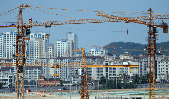 서울의 한 건설현장에서 타워크레인이 설치된 모습. 서울신문DB |