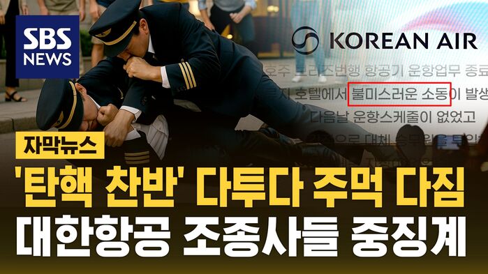 대한항공 조종사들이 대통령 탄핵을 놓고 싸우다 주먹 다짐을 벌여 면직 중징계를 받았습니다.