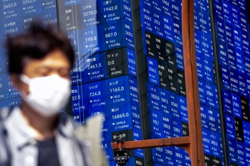 도쿄에서 7일 일본 증시 대표 주가지수인 닛케이225 평균주가(닛케이지수) 현황판 앞을 남성이 지나가고 있다. [AFP = 연합뉴스] |