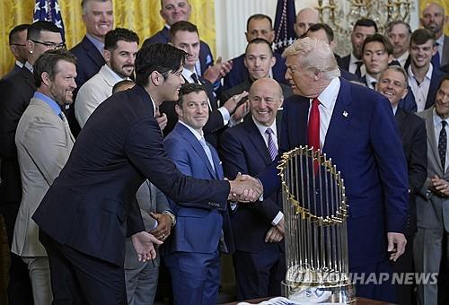 집권 1기 때인 2018년 트럼프 대통령이 그해 월드시리즈 투수 교체를 비난한 일로 껄끄러운 관계였던 로버츠 감독과 트럼프 대통령의 인종 차별성 발언에 반발해 2019년 백악관 초청을 거부했던 무키 베츠도 행사에 참석했습니다.