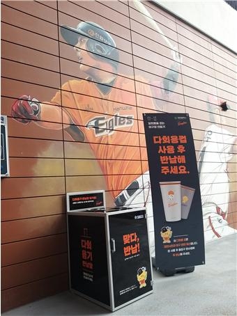 특히, 꿈돌이·꿈순이와 한화이글스 마스코트 ‘수리’ 캐릭터를 컵 디자인에 적용해 대전의 도시브랜드를 자연스럽게 홍보하는 한편, 다회용컵 사용 문화를 친숙하게 전달해 전국 야구팬들에게도 긍정적인 반응을 얻고 있다.
