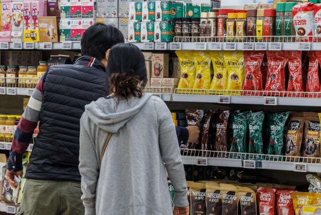 3월 물가 2.1% 상승, 가공식품 커피 8.3% 올라 (서울=연합뉴스) 황광모 기자 = 소비자물가가 석 달 연속 2%대 오름세를 나타낸 것으로 조사된 2일 서울 서초구 농협 하나로마트 양재점에서 시민들이 커피를 고르고 있다. 이번 조사에서 수산물(4.9%)은 가격이 상승해 2023년 8월(6.0%) 이후 1년7개월만에 최대 상승 폭을 기록했다. 2025.4.2 hkmpooh@yna.co.kr/2025-04-02 15:01:52/ <저작권자 ⓒ 1980-2025 ㈜연합뉴스. 무단 전재 재배포 금지, AI 학습 및 활용 금지>[<저작권자 ⓒ 1980-2025 ㈜연합뉴스. 무단 전재 재배포 금지, AI 학습 및 활용 금지>] |
