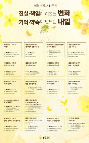 (광주·전남=연합뉴스) 정다움 기자 = 304명이 사망하거나 실종된 세월호 참사 11주기를 앞두고 광주·전남 곳곳에서 희생자들 추모 행사가 잇따라 열린다.