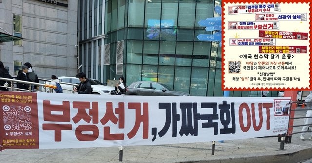 부정선거 현수막에, 부정선거 규탄 집회까지