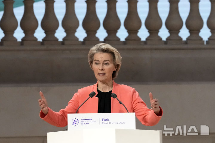 [파리=AP/뉴시스] 지난 2월 우르줄라 폰데어라이엔 유럽연합(EU) 집행위원장이 프랑스 파리에서 열린 '인공지능(AI) 행동 정상회의'에서 연설하고 있다. 2025.02.15. |