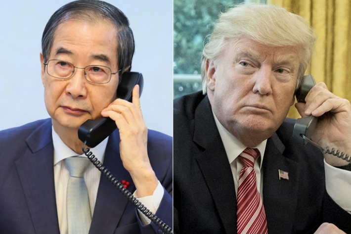 한덕수 대통령 권한대행이 어젯밤 도널드 트럼프 미국 대통령과 28분간 전화통화를 갖고 한미동맹 강화, 무역균형 등 경제협력, 북핵문제 등에 대해 논의했습니다.