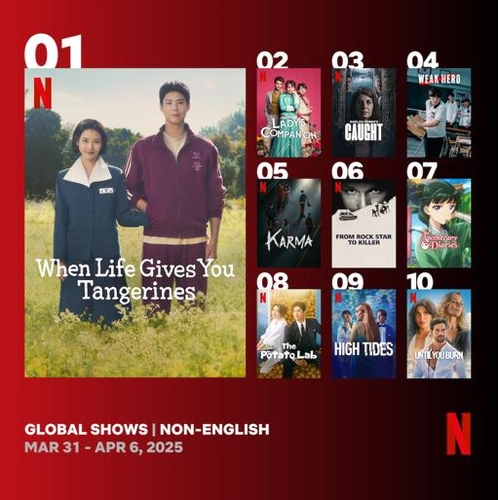 (서울=연합뉴스) 김경윤 기자 = 제주를 배경으로 평범하면서도 따뜻한 가족의 일대기를 그린 시리즈 '폭싹 속았수다'가 지난주 넷플릭스 글로벌 이용자들이 가장 많이 본 비(非)영어 TV 프로그램으로 꼽혔다.