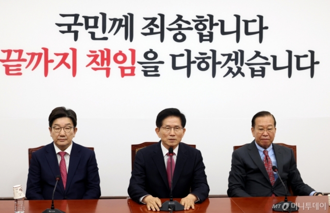 권 원내대표는 "대통령은 이미 탄핵 결정으로 모든 법적 책임을 졌다"며 "입법권 남용, 탄핵 소추 남용 등으로 국민으로부터 위임 받은 입법권을 모독한 이재명 세력이 국민들로부터 정치적 심판을 받아야 되는 선거가 이번 대선"이라고 했다.