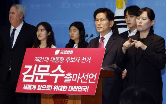 김문수 전 고용노동부 장관이 9일 국회에서 기자회견을 열어 제21대 대통령 선거 출마 선언을 하고 있다. 2025.4.9 김현민 기자 |