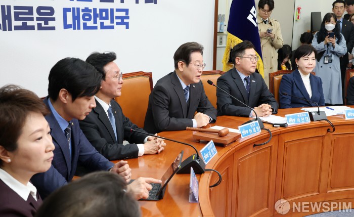 [서울=뉴스핌] 정일구 기자 = 이재명 더불어민주당 대표가 9일 오전 서울 여의도 국회에서 열린 최고위원회의에서 모두발언을 하고 있다. 이날 이 대표는 조기 대선 출마를 위해 당 대표 사퇴 의사를 밝혔다. 2025.04.09 mironj19@newspim.com