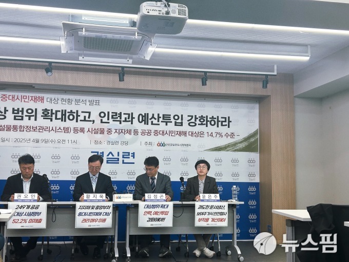 윤은주 경실련 도시개혁센터 부장은 "중대시민재해 대상이 FMS 등록 시설물의 14%에 불과하다는 것은 현재 중대시민재해 대상이 매우 제한적이라는 것을 보여주는 것"이라며 "시민들이 납득할 수 있는 범위로 중대시민재해 대상을 확대해 나가는 것이 필요하다"고 설명했다.