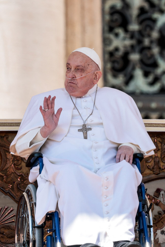 이 가운데 교황은 지난 6일 퇴원 후 처음으로 공식석상에 모습을 드러냈다. 가톨릭 희년을 기념하는 특별 미사가 열린 바티칸의 성 베드로 광장에 등장한 것이다. 교황은 코에 호흡용 튜브를 꽂은 채 휠체어를 탄 모습이었다. 그는 손을 흔들며 광장에 모인 신도들을 향해 인사했고, 예정에 없던 교황의 깜짝 등장에 신도들은 자리에서 일어나 박수를 치며 화답했다.