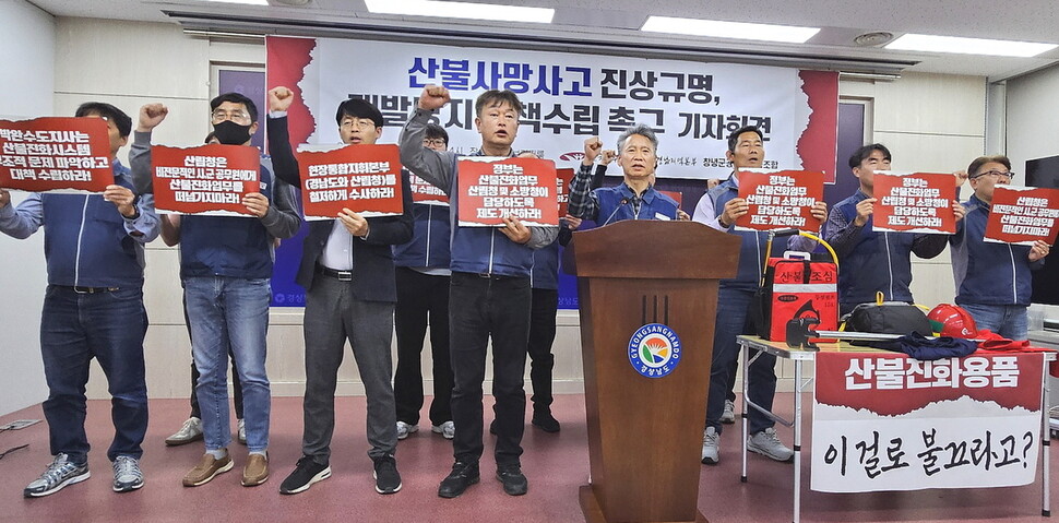 전국공무원노조 경남본부는 9일 기자회견을 열어 ‘산청 산불’을 중대재해로 규정하고, 진상규명과 대책마련을 촉구했다. 중대재해처벌법 적용 여부는 ‘사업주 또는 경영책임자’가 재해예방에 필요한 ‘안전 및 보건 확보의무’를 다했는지를 확인해야 한다.