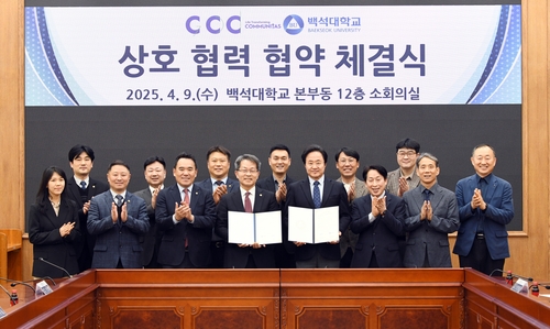 (천안=연합뉴스) 유의주 기자 = 백석대는 9일 교내 본부동 12층 소회의실에서 한국대학생선교회(CCC)와 상호협력 협약을 맺었다.
