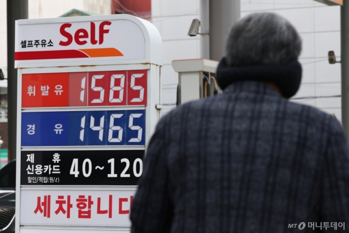 글로벌 관세전쟁으로 인해 경기침체 우려로 국제유가가 4년 만에 최저 수준으로 떨어진 가운데 9일 오후 경기 수원시의 한 주유소에 휘발유와 경유 가격이 표시돼 있다. /사진=뉴스1 |