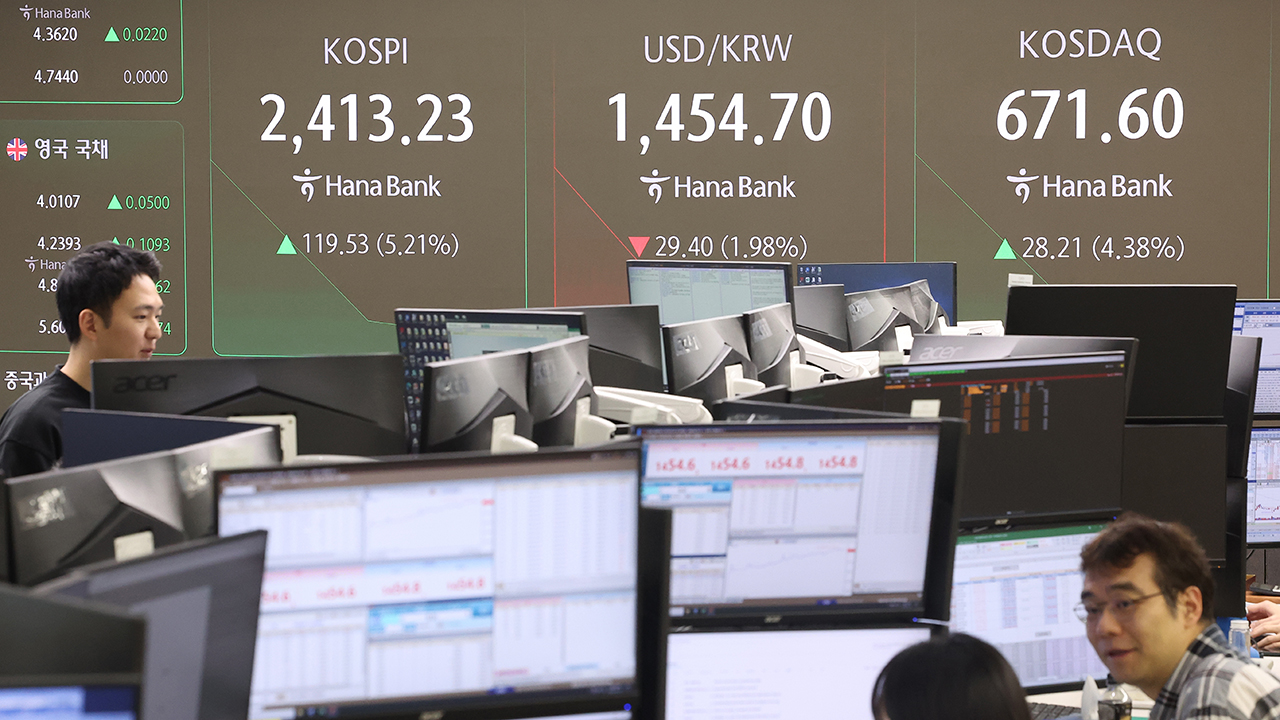 ▲ 10일 오전 서울 중구 하나은행 본점 딜링룸 현황판에 코스피, 원/달러 환율, 코스닥 지수가 표시돼 있다.