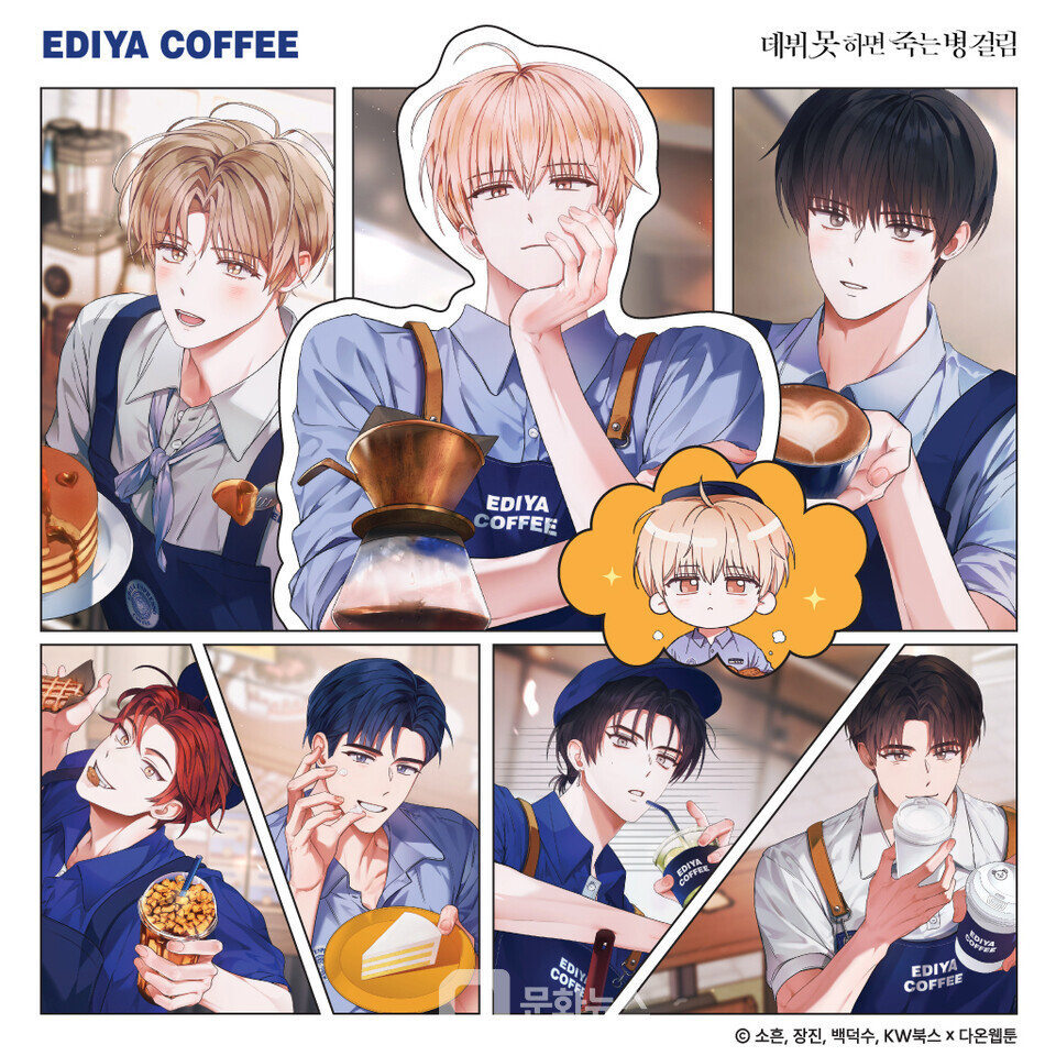 이디야커피가 웹툰 ‘데못죽(데뷔 못 하면 죽는 병 걸림)’과 협업을 통해 포토 카드 세트와 한정판 굿즈를 선보인다고 밝혔다. / 사진제공=이디야커피 |