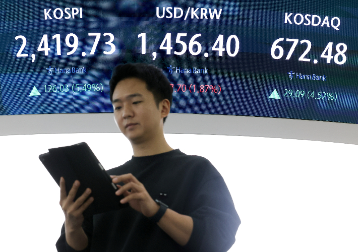 10일 코스피는 전 거래일보다 4.42% 상승한 2395.13으로 장을 출발한 이후 오름세를 유지하며 2410선에 안착했다.