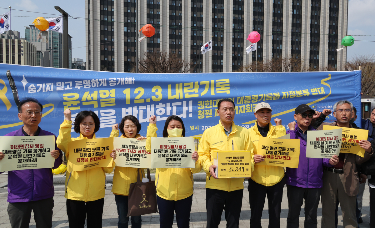 4·16세월호참사가족협의회와 4월16일의약속국민연대(4·16연대), 투명한사회를위한정보공개센터 등은 10일 오전 서울 종로구 정부서울청사 앞에서 기자회견을 열고 대통령 권한대행 한덕수 국무총리에게 계엄 관련 자료 대통령지정기록물 지정 반대 청원을 제출했다고 밝혔다. 이번 청원에는 세월호·이태원 참사 유가족을 비롯해 시민 약 3만2000명이 동참했다.