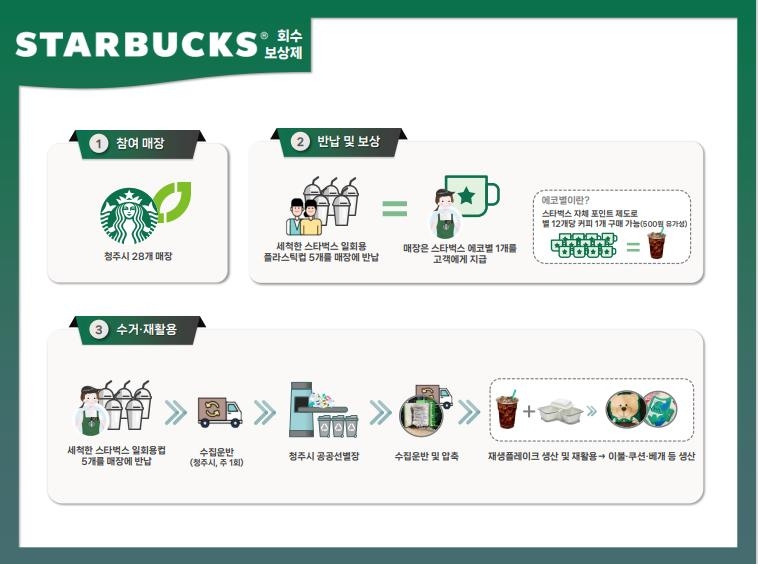이들 기관은 다음달부터 청주지역 스타벅스 매장 28곳에서 일회용컵 회수·보상제를 실시할 계획이다.