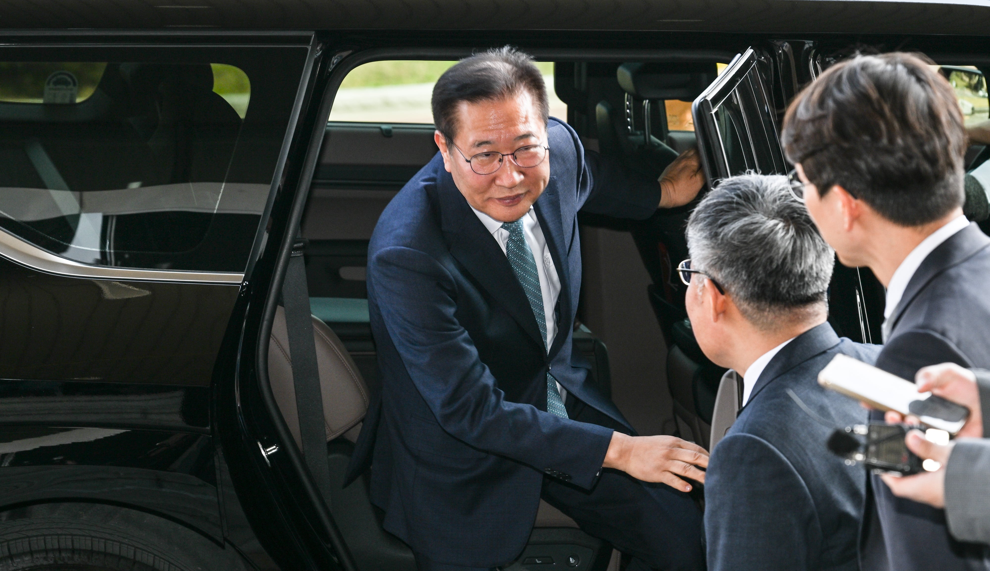 탄핵안 기각으로 직무 복귀한 박성재 법무부 장관이 10일 경기 과천 법무부 청사로 출근하고 있다. /고운호 기자 |