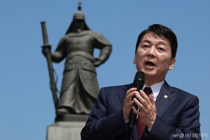 (서울=뉴스1) 김명섭 기자 = 안철수 국민의힘 국회의원이 8일 서울 광화문 이순신 동상 앞에서 제21대 대통령 선거 출마 기자회견을 하고 있다. 2025.4.8/뉴스1 Copyright (C) 뉴스1. All rights reserved. 무단 전재 및 재배포, AI학습 이용 금지. /사진=(서울=뉴스1) 김명섭 기자 |