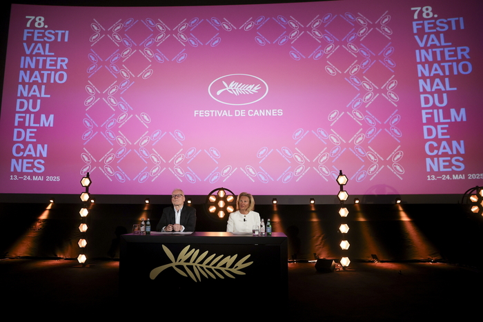 티에리 프리모(왼쪽) 칸 국제영화제 집행위원장이 제78회 칸국제영화제 초청작을 발표하고 있다. 사진ㅣ연합뉴스 |