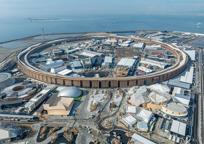 이달 13일 개막하는 2025 오사카 간사이 엑스포의 ‘그랜드 링’. 못을 쓰지 않고 목재들을 끼워 넣는 일본 전통 기법으로 만들었다. ⓒExpo 2025 |