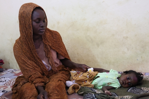 '중증 급성영양실조'로 병원 입원한 수단 난민 아동 |