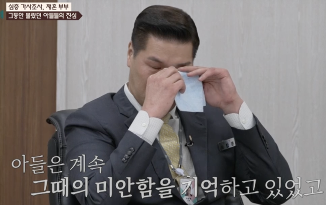 [OSEN=김수형 기자] ‘이혼숙려캠프’에서 아이들에게 '보육원' 막말을 쏟은 아내가 충격을 안긴 가운데, 아이들 속마음 인터뷰에 끝내 눈물을 쏟았다.이를 지켜보던 서장훈도 눈물을 흘렸다.